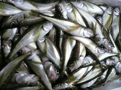 底引き網漁が解禁となる9月から、丹後宮津漁港では、金色の美しいハタハタが並びます。