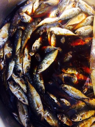 夏から秋に獲れる小鯵を素干しにし、揚げて、特製たれで煮込んでいます。